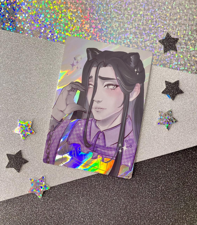Photocard is in the size 59x86mm, background behind a character and some of the elements are holographic.